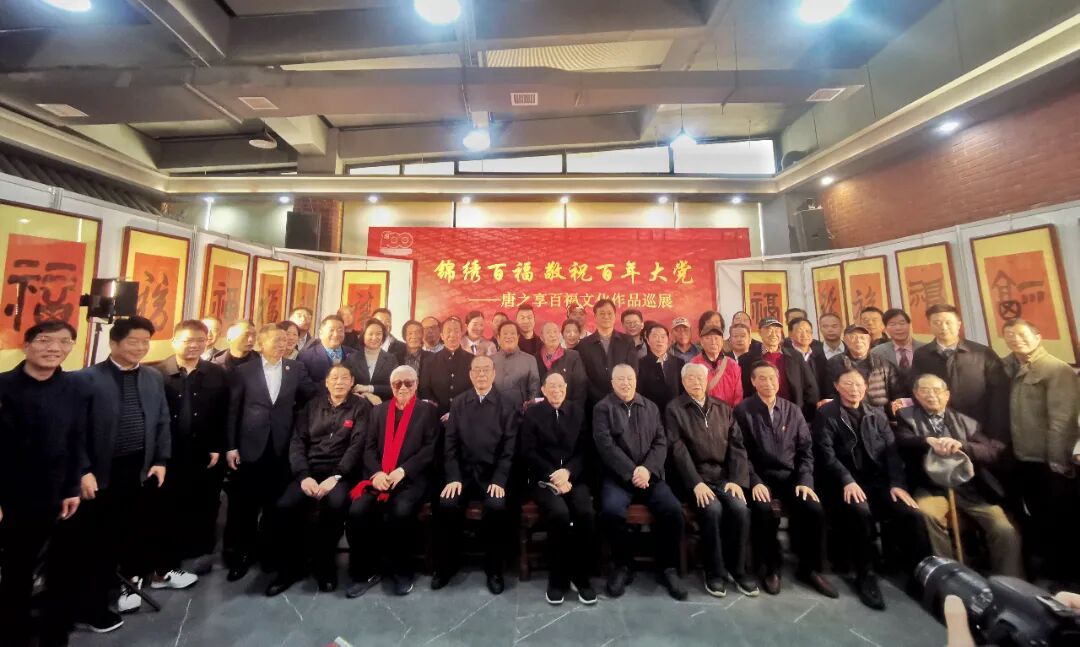 活动结束后到场的领导和嘉宾合影留念。“锦绣百福敬祝百年大党——唐之享百福文化作品巡展”在热烈的氛围中圆满开幕。